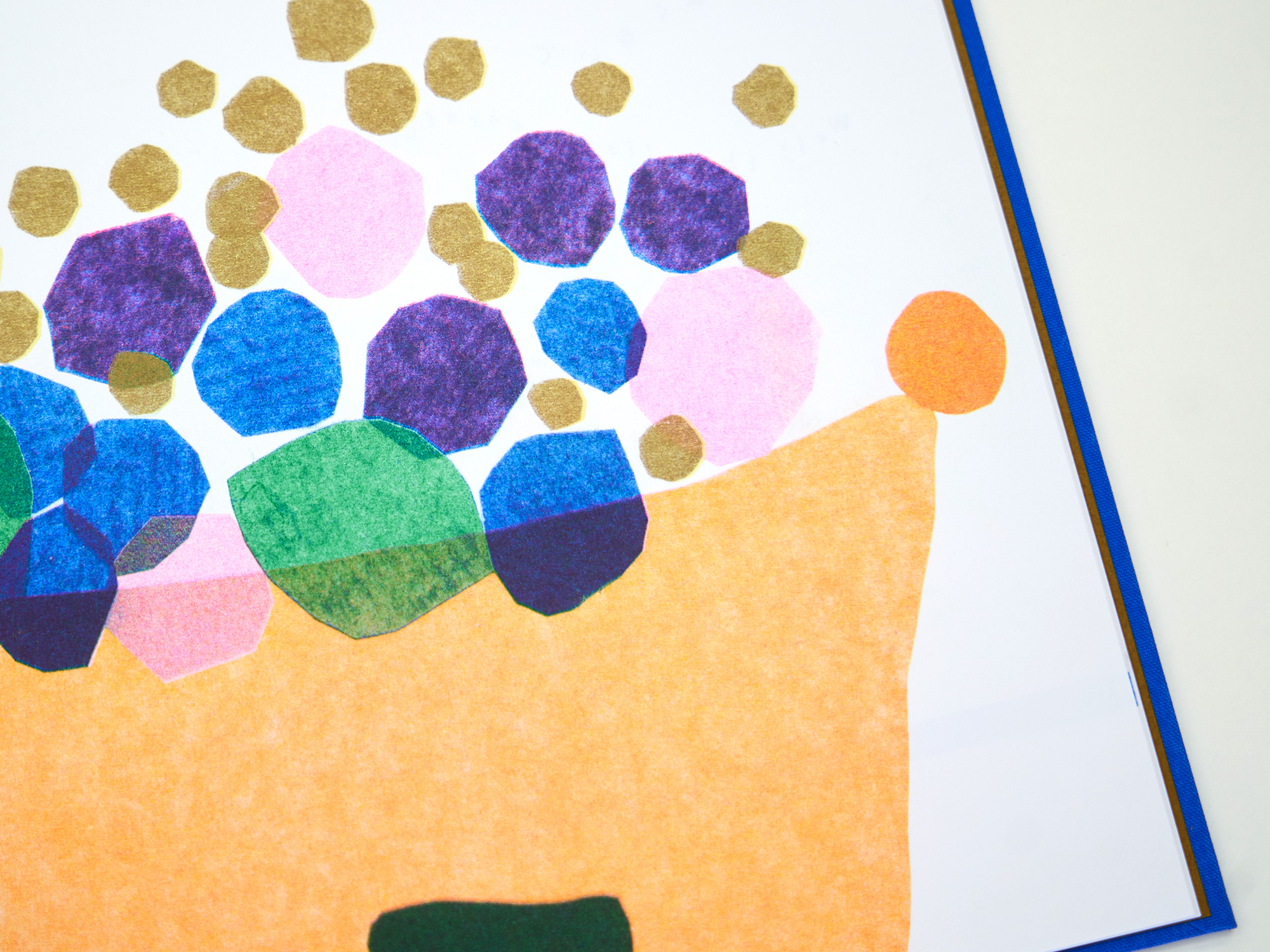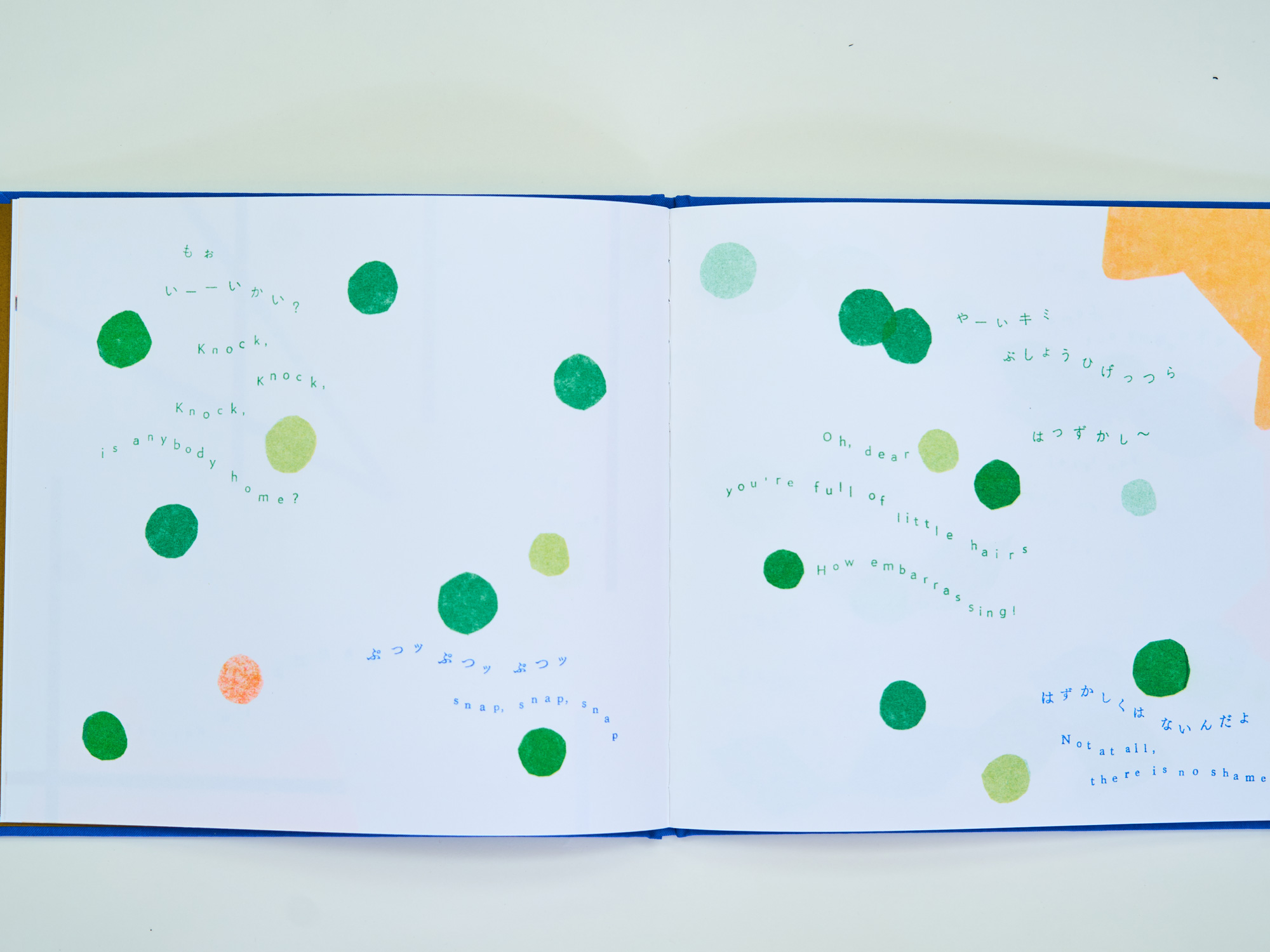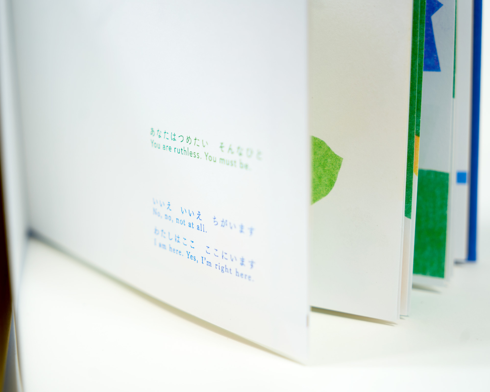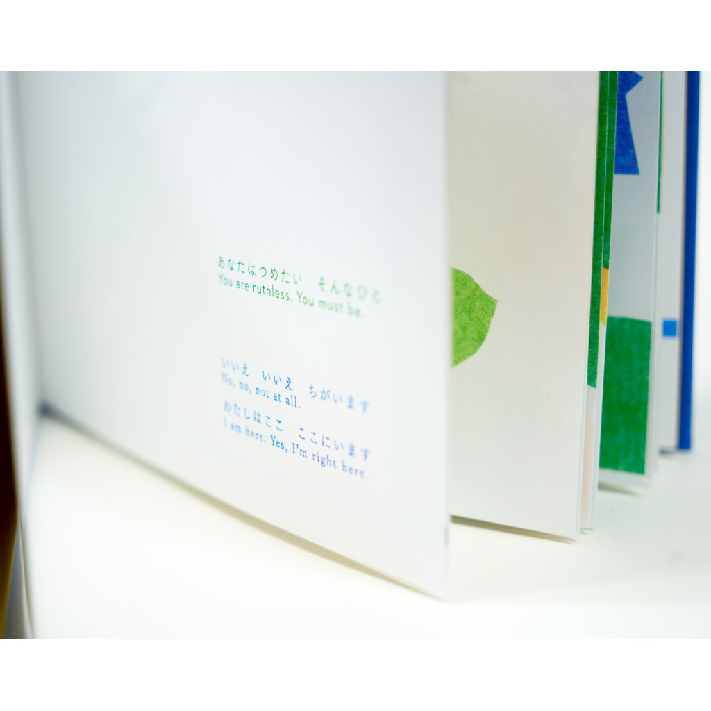 日英併記。全ページリソグラフ印刷によるにじみや重なりの風合いに加え、布貼り上製本・箔押し加工による装丁も魅力。幅広い読者へのギフトにもおすすめです。KISSA BOOKSのリソグラフ機で印刷しました。