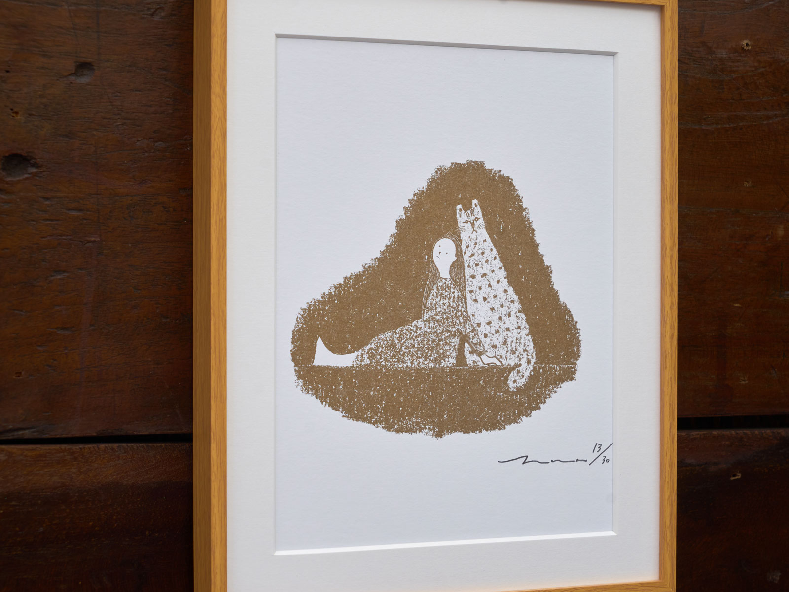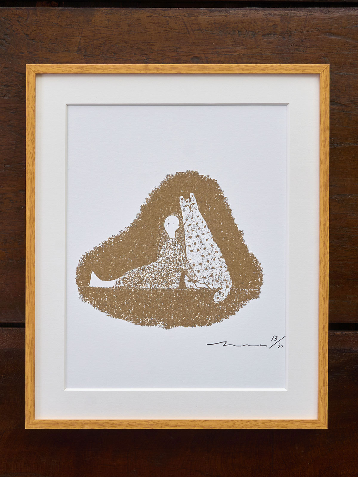 井上奈奈『ウラオモテヤマネコ』のリソグラフ作品 額装済み